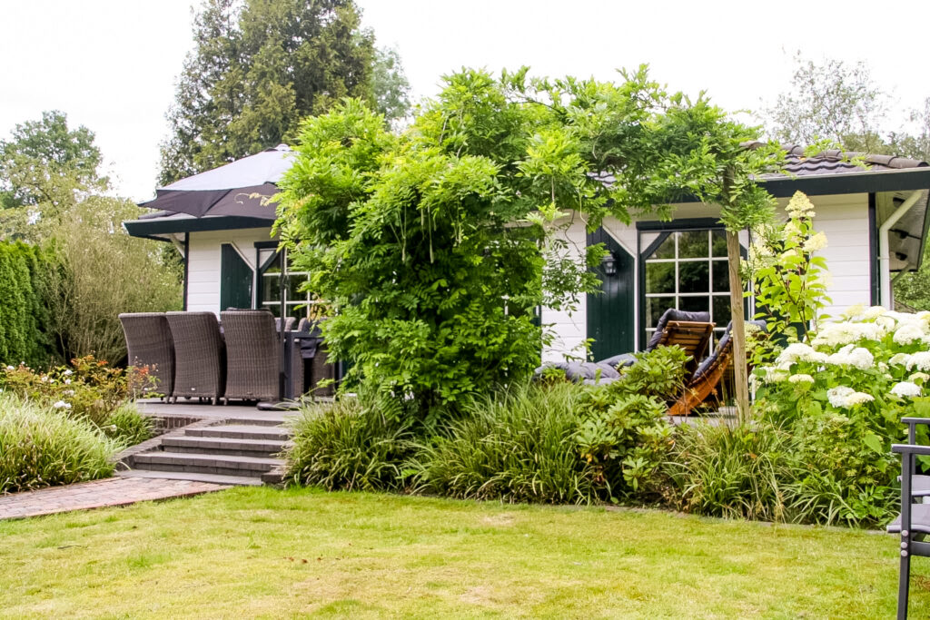 Het Veluws Paradijs heeft zijn naam te danken aan de prachtige tuin. Een grote volledig omheinde tuin, met heel veel privacy. Er is genoeg ruimte voor de kinderen om te spelen. Er is een grote eettafel met 6 luxe stoelen, 2 heerlijke ligstoelen. Om lekker te relaxen staat er een prieeltje met een loungebank. Tevens is er een schuurtje waar de fietsen gestald kunnen worden.